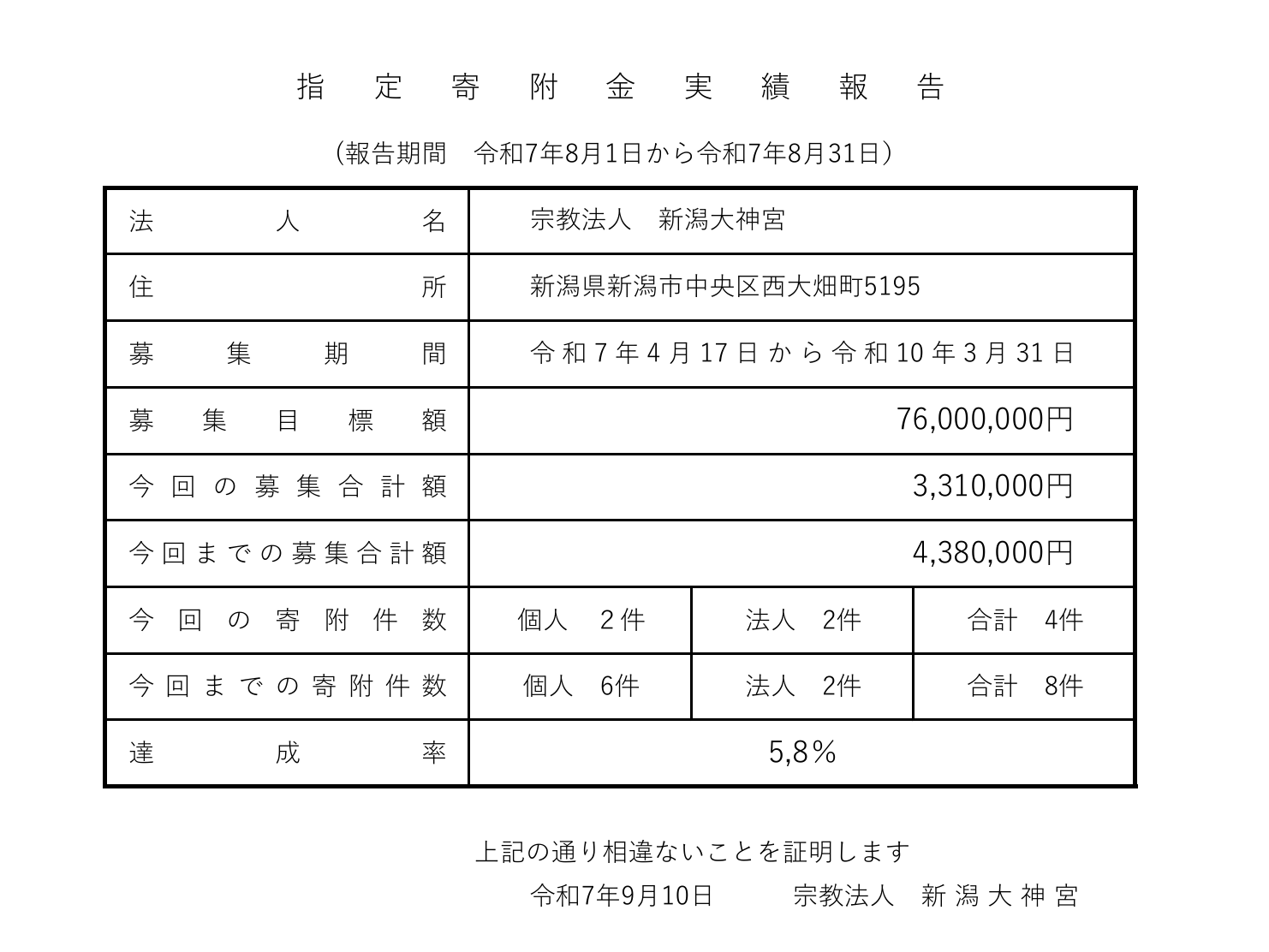 「能登半島地震指定寄附金」実績報告 R7,8月