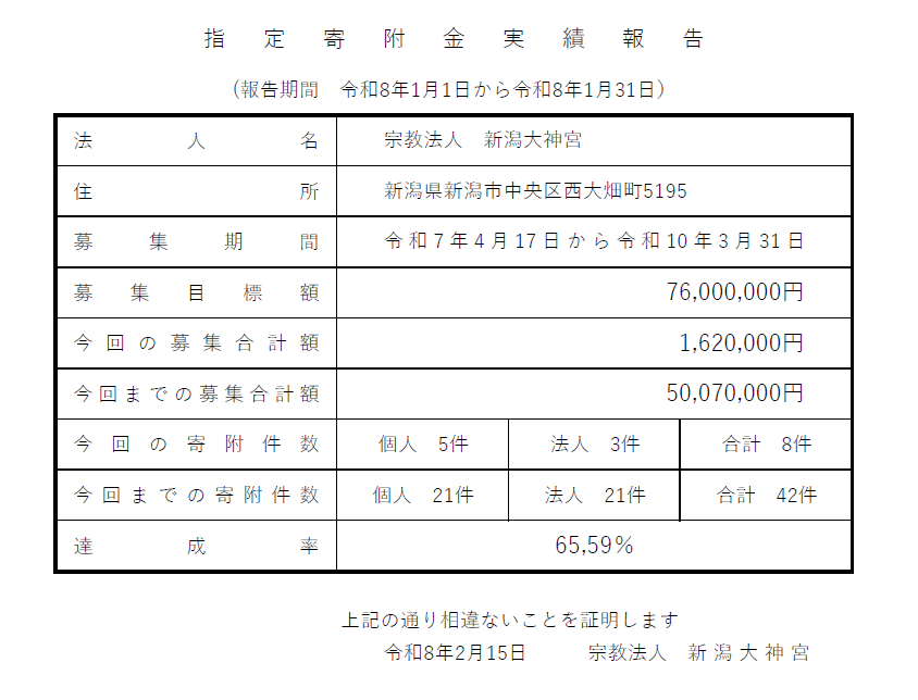 「能登半島地震指定寄附金」実績報告 R8,1月