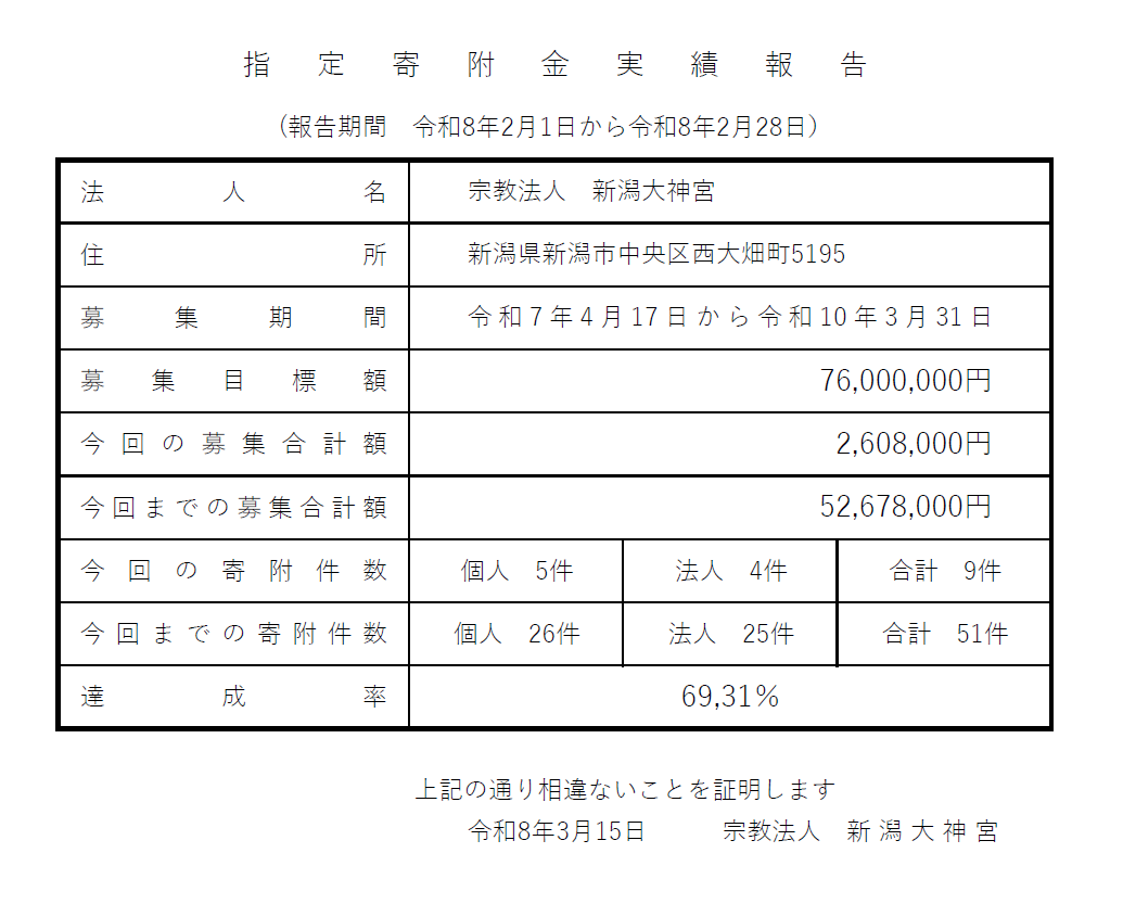 「能登半島地震指定寄附金」実績報告 R8,2月